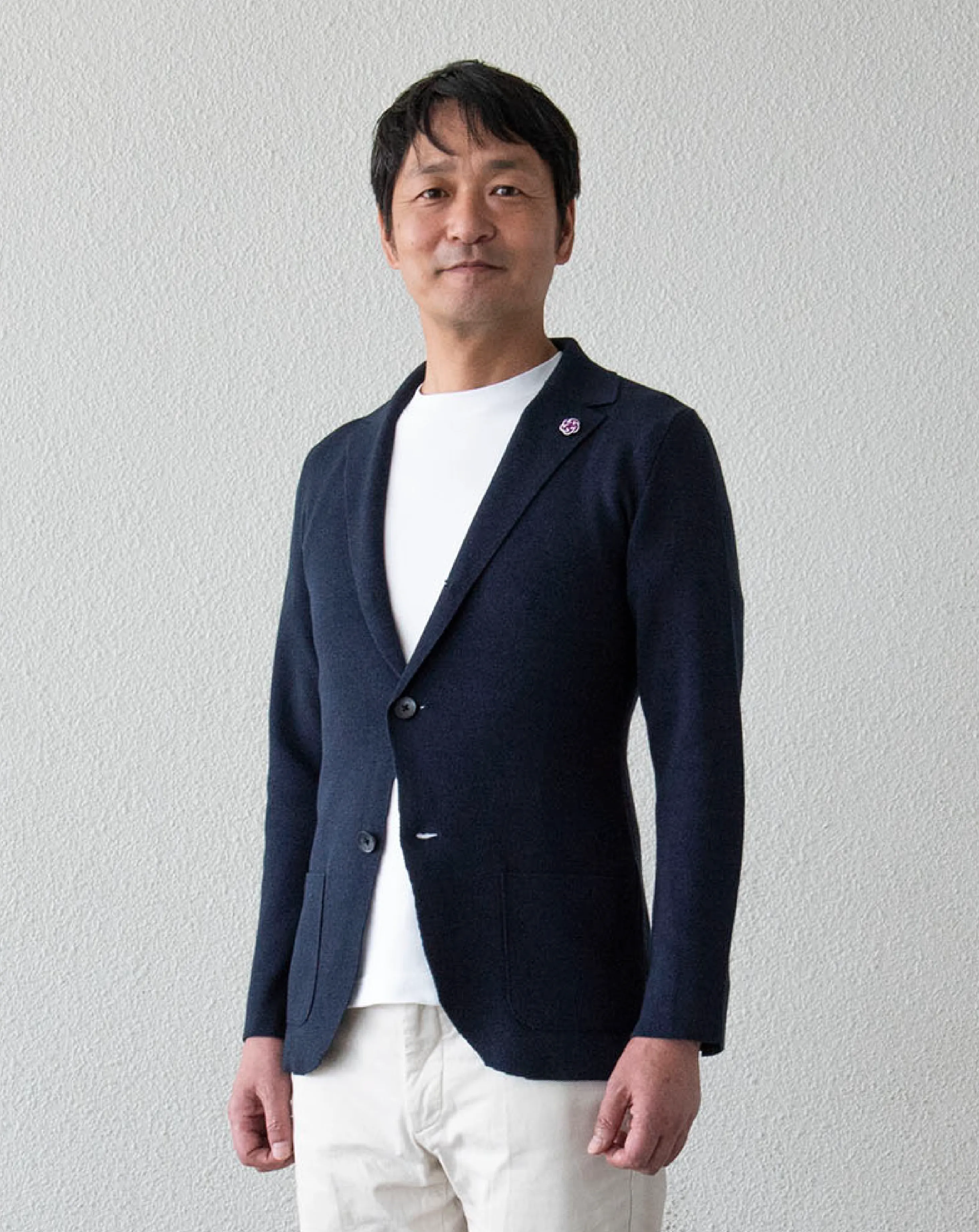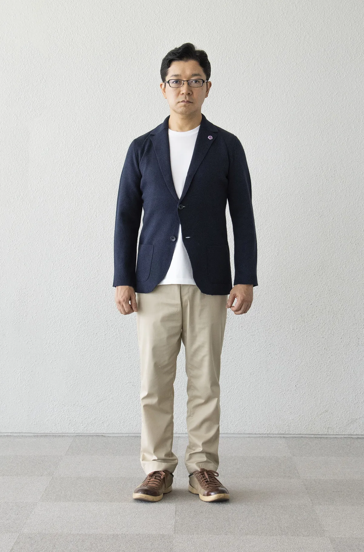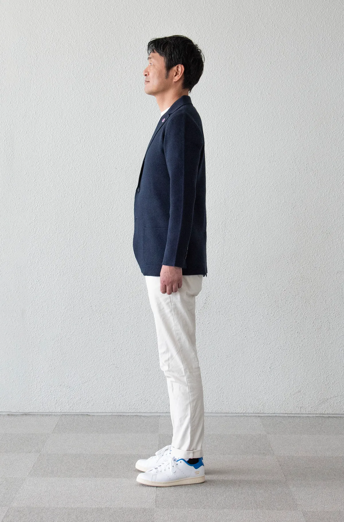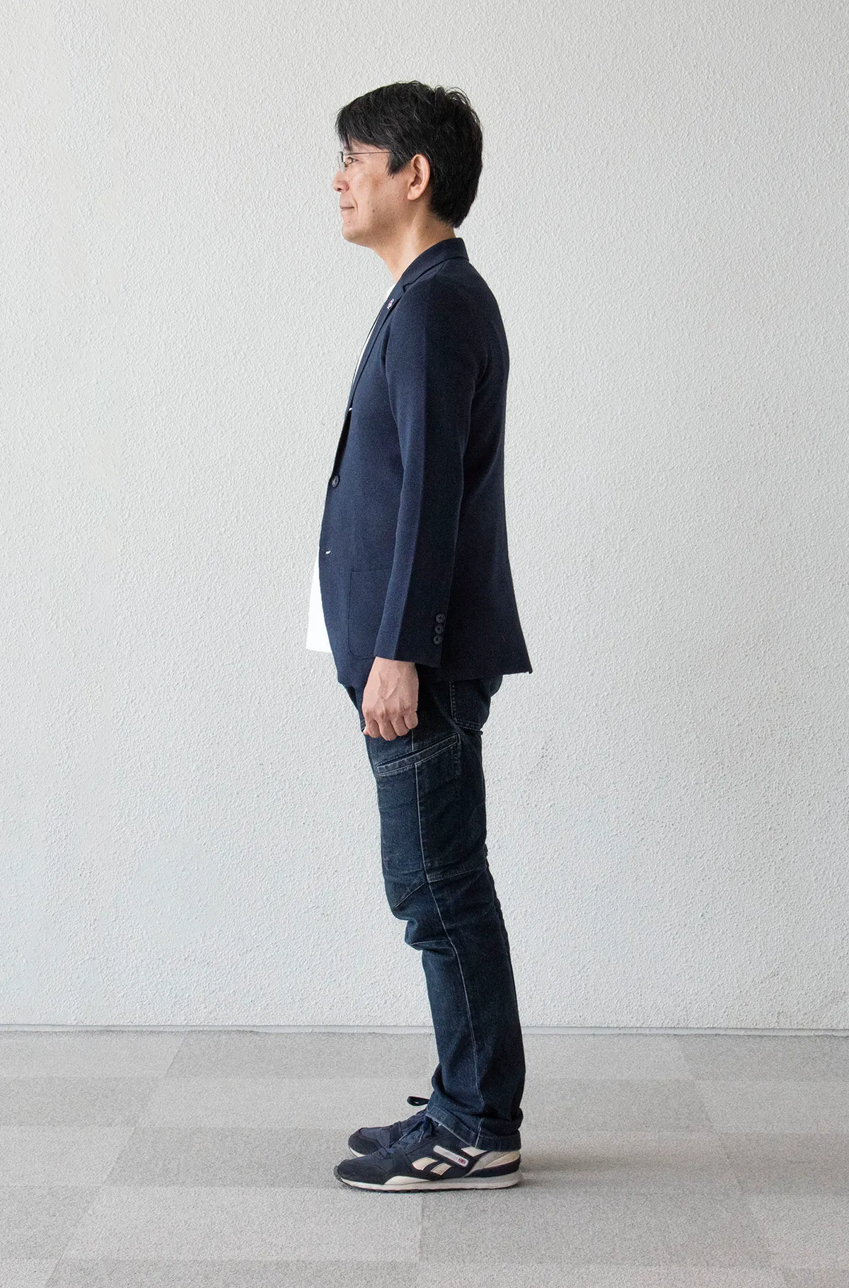 フェイバニッツのニットジャケットは、生地と縫い目に伸縮性が有るので、織物ジャケットほどのゆとり寸法は必要ありません。